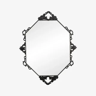 Malone gulvspejl i målene 53×170 cm i sort metal. Malone Hall-serien består af pulverlakeret metal med en sandfarvet struktur og har metalknapper i guldfarve. Gulvspejlet har tre ophæng, der kan placeres efter dine ønsker.