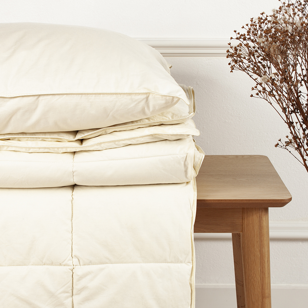 Kapokdyne KIRUNA fra ARCTIC er en sval helårsdyne fyldt med 100% kapok. Dynen er betrukket med et tætvævet og finkæmmet bomuldsvår.