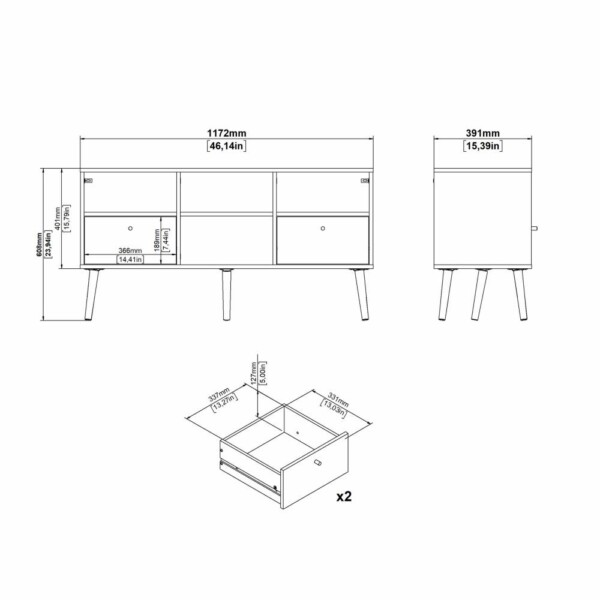 Bodo TV-møbel med 2 skuffer, hvid, 117,2 x 39,1 x 60,8 cm