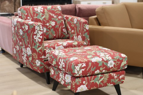 Burhéns Twist 1 pers. Stol med Arm (86 cm) Floren stof Linen Ruby. Ben Sort.