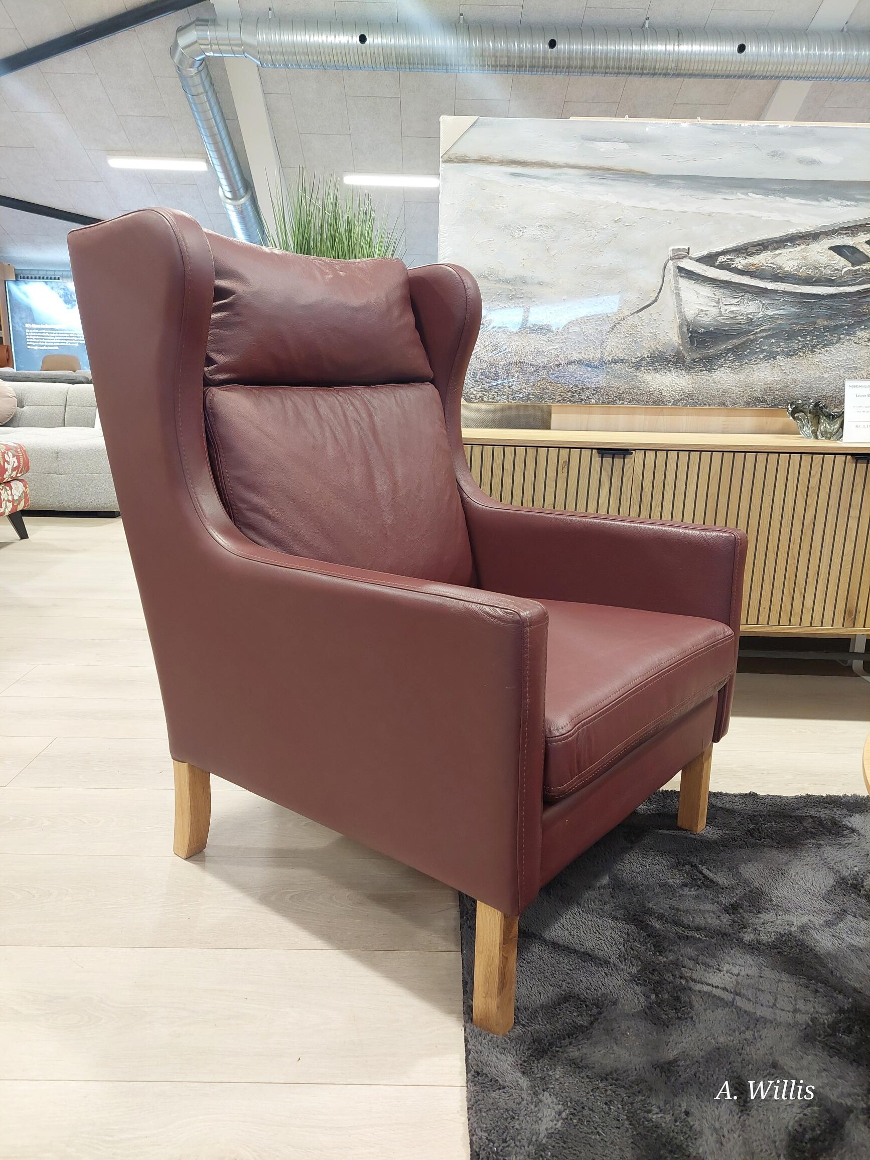 Massiv Egetræ olie Ben. Læderbetræk i Bordeaux farve.