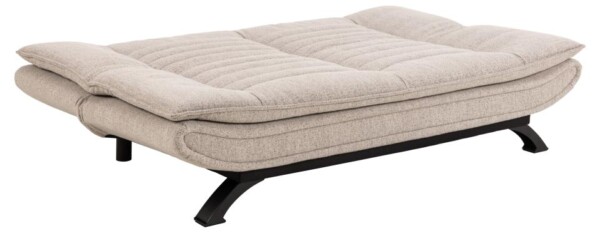Faith sovesofa, Monza stof beige 60, Stel mat sort pulverlakeret stål med click & clack og horisontal syning, 196x98x91 cm