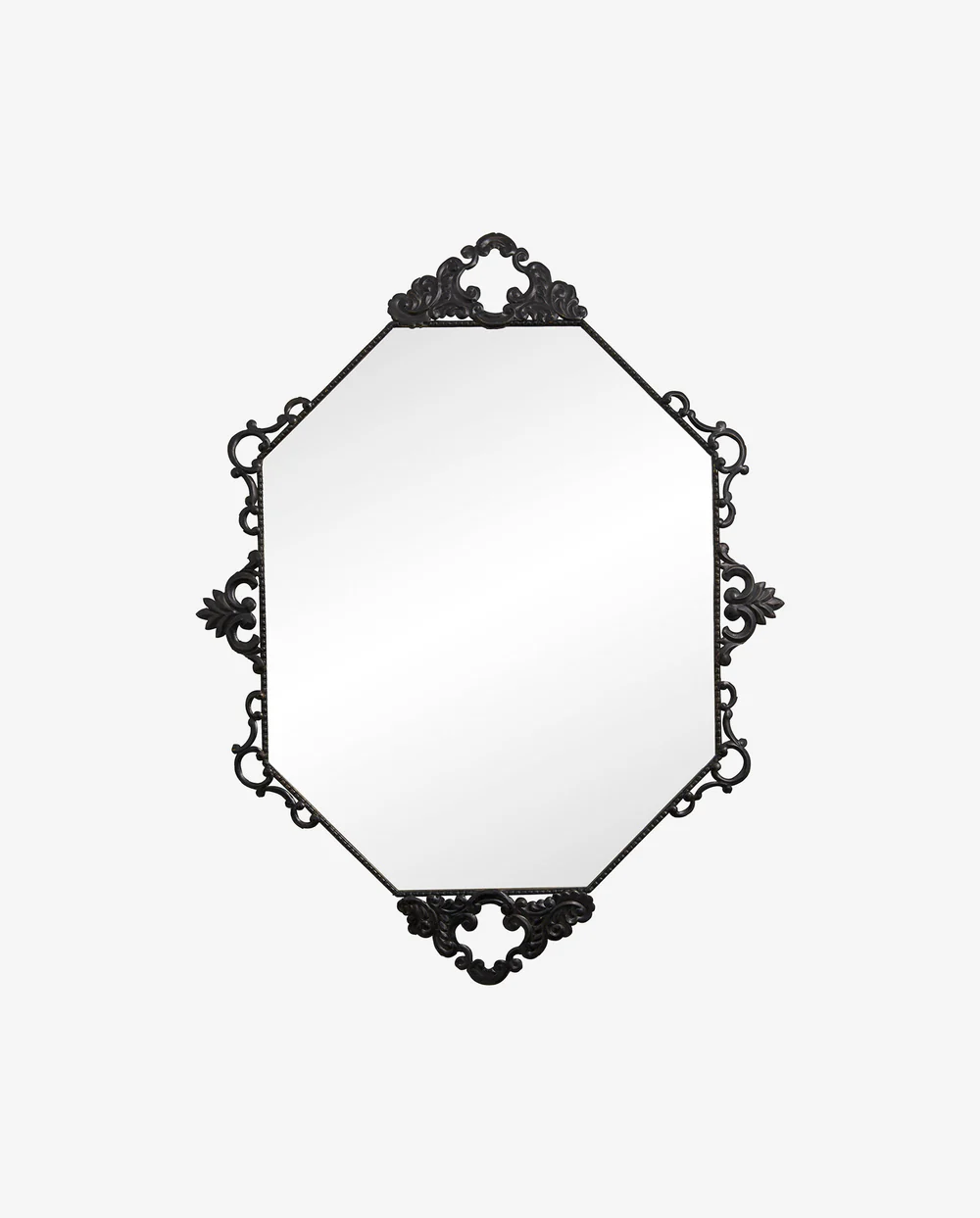 Elegant spejl med dekorativ ramme i metal og en fin facetslebet kant på spejlglasset. Spejlet er smukt til ophæng i enten entré, stue, bad eller soveværelse og er også fint som vægdekoration.