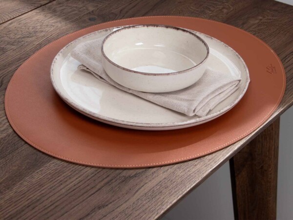 Skab en varm og indbydende borddækning med denne ovale dækkeserviet i blød cognacfarvet PU fra House of Sander. Det eksklusive udtryk kombineret med det bløde materiale giver både komfort og beskyttelse til dit spisebord.