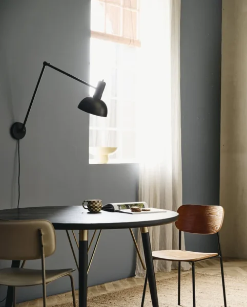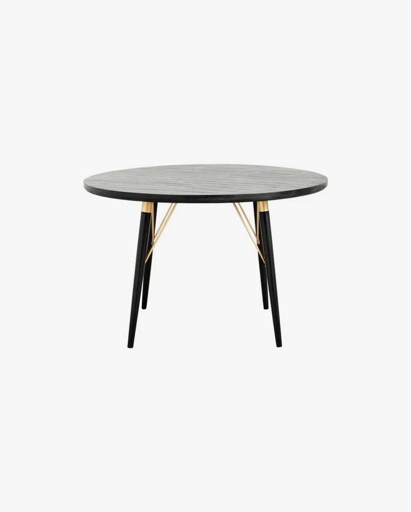 Rundt spisebord i træ, diameter 120 cm, farve sort/mat guld.