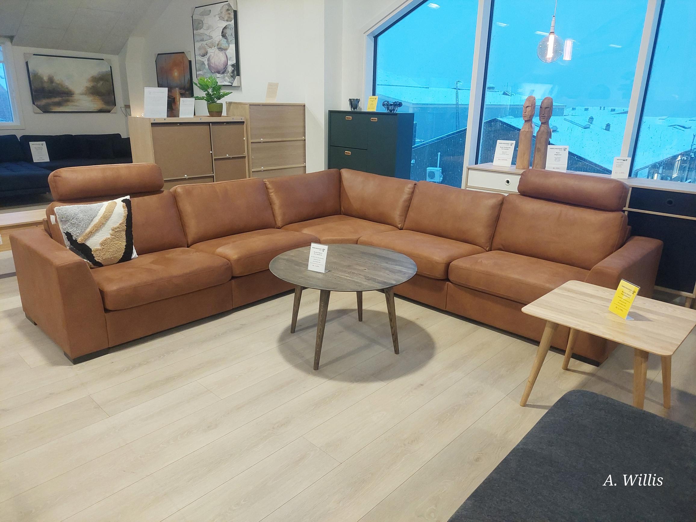 Think Hjørnesofa Kentucky cognac med 2 nakkestøtte *Udstillingsmodel*